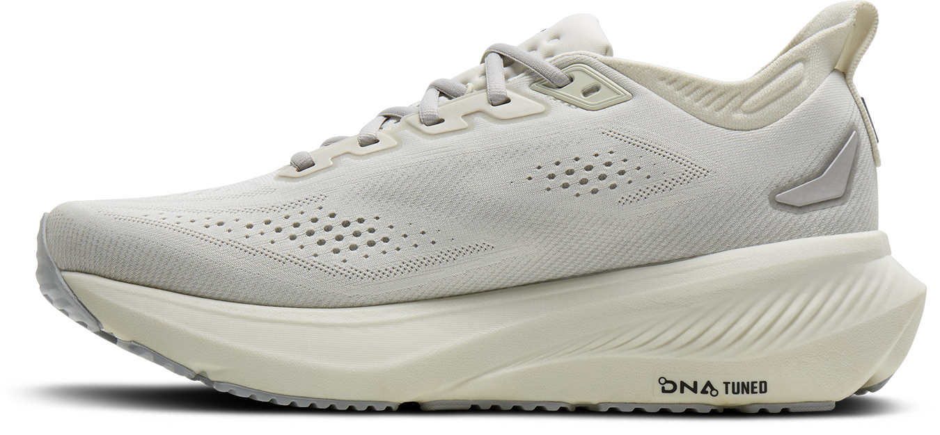 Featuring an extra 2mm of DNA TUNED, the next generation of nitrogen-infused foaming created with a tuned dual-cell technique. The heel features large cells for plush landings, while the forefoot features small cells for responsive toe-offs. Brooks' cutting-edge foam reduces added layers and processes for a seamlessly tuned experience.