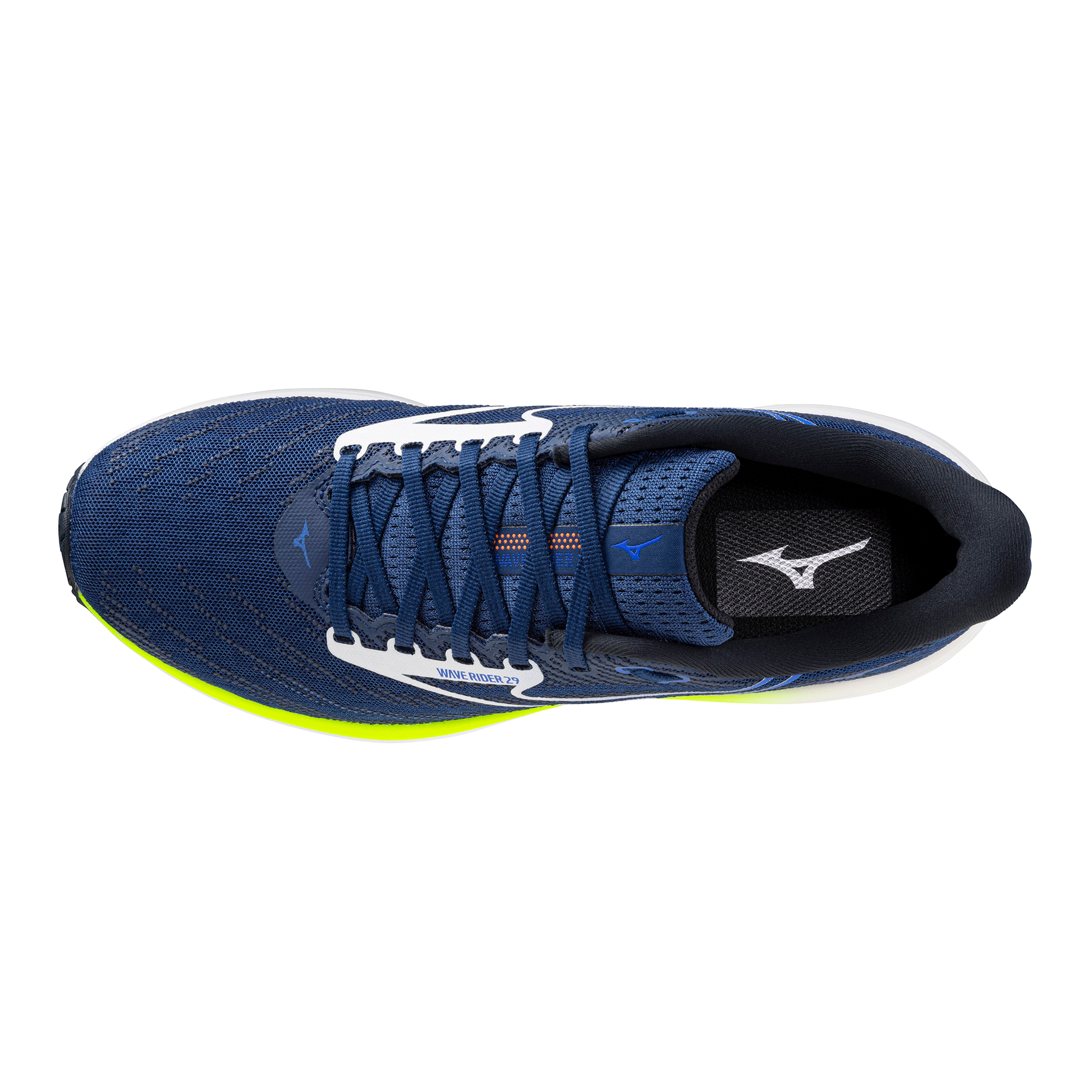 Mizuno Mens Wave Rider 29 | Estate Blue/White/Lightning Yellow | Neutral | Road
